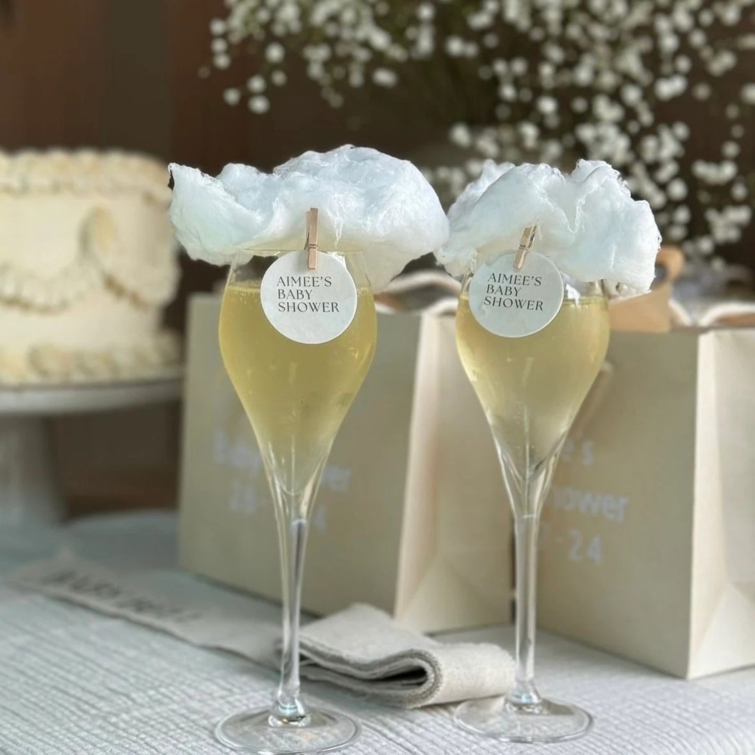 Make your Baby Shower event personalised by adding these custom cocktail toppers and drinks toppers for your glasses. Come with the pegs to attach.