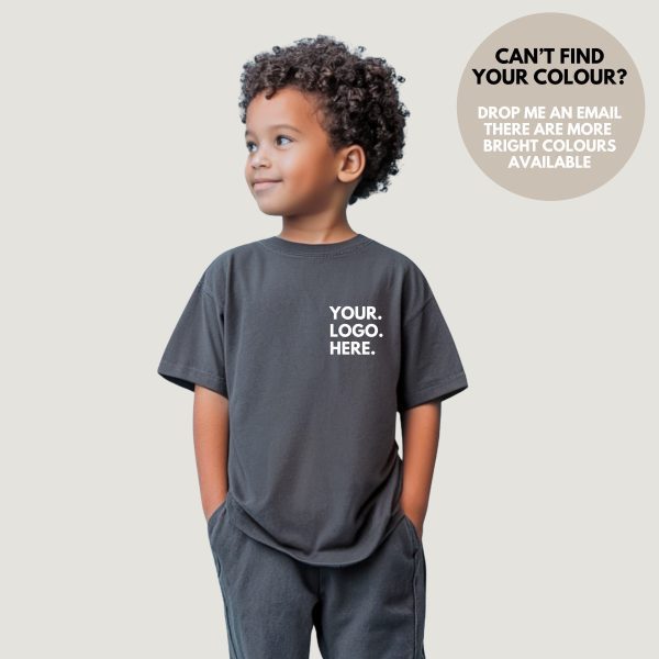 Elevate your brand with our high-quality childrens branded t-shirts! Each t-shirt features a small logo on the front and a large logo on the back as standard.